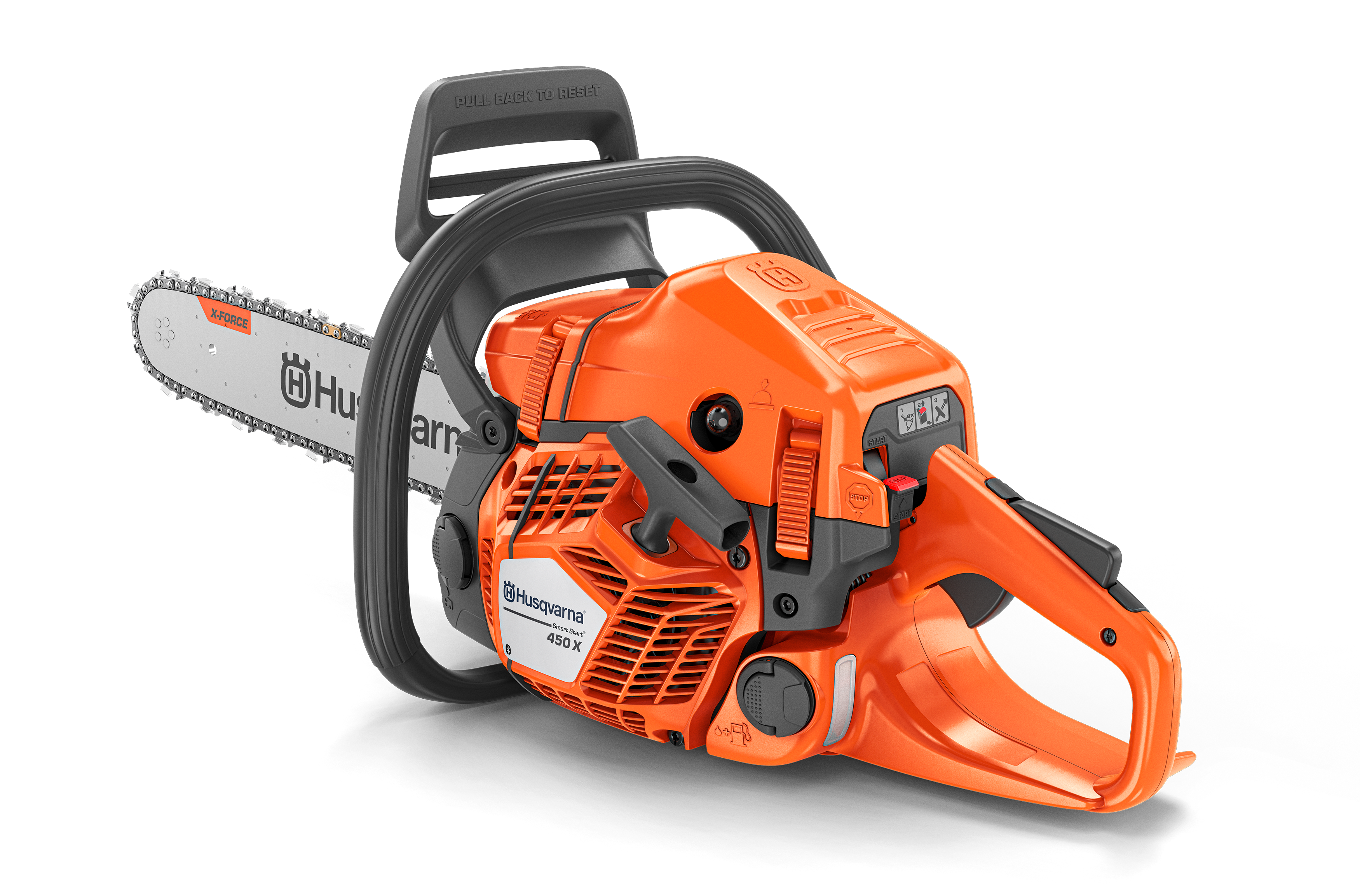 Husqvarna 450X ir izstrādāts augstas veiktspējas darbam visos mežsaimniecības uzdevumos, apvienojot izcilu zāģēšanas jaudu, paaugstinātu izturību un ērtu lietošanu. Tas ir aprīkots ar optimizētu 2.5 kW X-Torq® dzinēju, kas nodrošina savā klasē vadošo jaudas un svara attiecību, garantējot efektīvu darbu un vieglu vadāmību.Pateicoties Smart Start® un AutoTune tehnoloģijām, 450X iedarbināšanai nepieciešamas tikai minimālas darbības, savukārt, dzinēja iestatījumi automātiski pielāgojas optimālai darbībai jebkuros apstākļos. Uzlaboto zāģēšanas pieredzi papildina tādas funkcijas kā krāsainas gāšanas atzīmes un fiksēts sliedes uzgrieznis. Savienojamība nodrošina piekļuvi digitālajai informācijai par izstrādājumu un tā lietošanas datiem, izmantojot Husqvarna Connect.